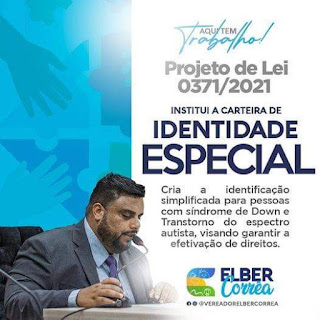 Uma importante conquista as pessoas com Sindrome de Down e Transtorno do Espectro, foi consolidada recentemente em Itaboraí. A Câmara de Vereadores, aprovou o projeto de Lei, de autoria do presidente da Casa, Elber Correa. A Carteira de Identidade Especial , visa criar uma identificação simplificada aos cidadãos que sofrem com os transtornos relatados. A proposta ainda tem a meta de garantir a efetivação de um número maior de direitos a esses cidadãos, pertencentes a uma importante camada na sociedade. O projeto do vereador Elber Correa, após aprovado na câmara, foi encaminhado ao Poder Executivo Municipal, tendo sido logo sancionado. A notícia da aprovação da lei, agradou em cheio a população. ” Achei a proposta muito boa, são iniciativas como essa que precisam ser mais fomentadas. parabéns vereador Elber ” Declarou, senhora Lúcia Quaresma, moradora de Porto das Caixas, mãe de uma menina especial, com 6 anos.